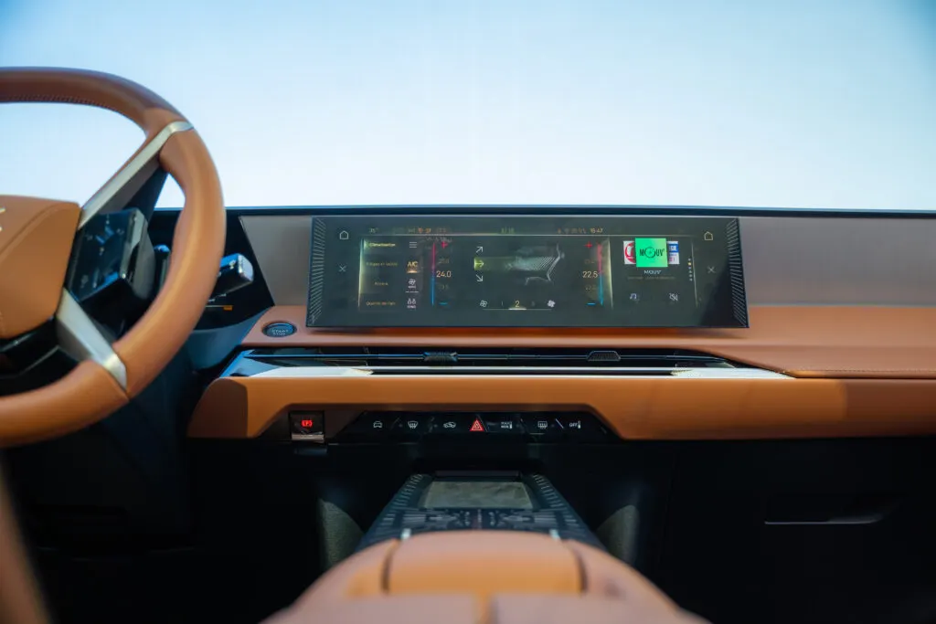 Dès que vous ouvrez la porte, vous comprenez que la DS N°8 ne fait aucun compromis sur le confort et le style. On retrouve surtout des matériaux nobles : cuir pleine fleur, alcantara, bois… chaque détail respire la qualité.